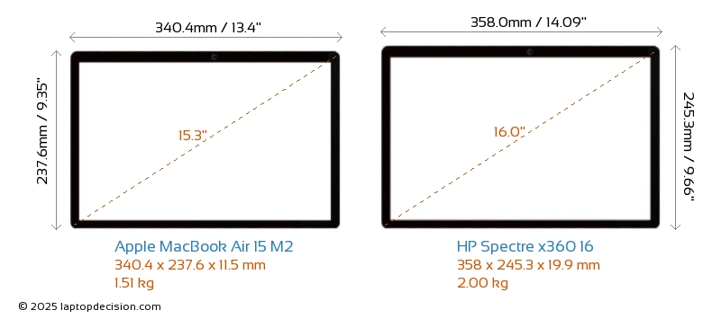 Audio JackBoth MacBook Air 15 M2 and Spectre x360 16 are equipped with a 3.5mm Audio Jack, providing seamless connection to headphones and speakers.