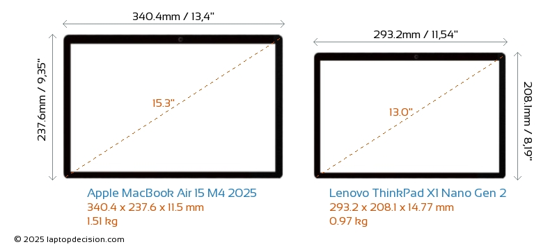 Audio JackBoth MacBook Air 15 M4 2025 and ThinkPad X1 Nano Gen 2 are equipped with a 3.5mm Audio Jack, providing seamless connection to headphones and speakers.