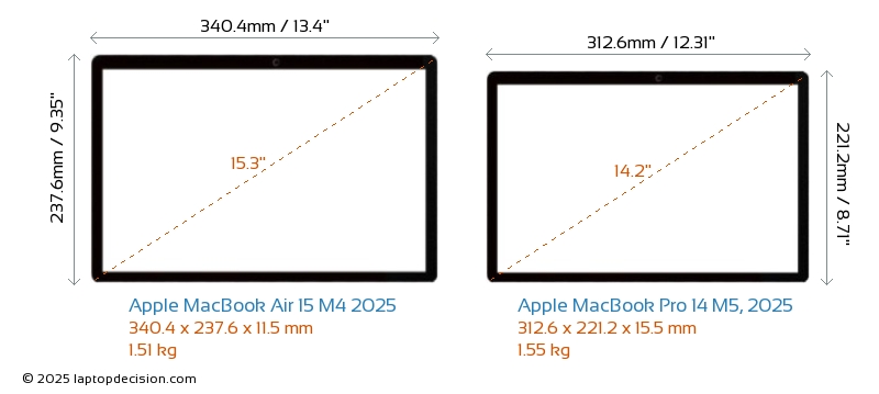 USB Neither MacBook Air 15 M4 2025 nor MacBook Pro 14 M5, 2025 has USB-A ports.Both MacBook Air 15 M4 2025 and MacBook Pro 14 M5, 2025 have USB Type-C ports. MacBook Air 15 M4 2025 has 2x USB 4.0 USB Type-C ports, while MacBook Pro 14 M5, 2025 has 3x USB 4.0 USB Type-C ports.