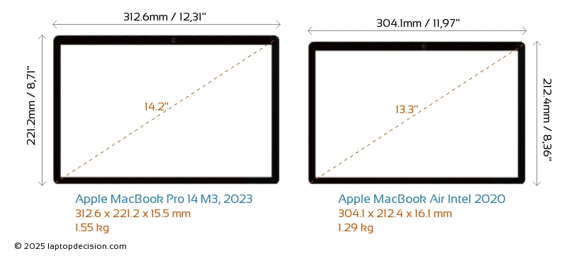 Audio JackBoth MacBook Pro 14 M3, 2023 and MacBook Air Intel 2020 are equipped with a 3.5mm Audio Jack, providing seamless connection to headphones and speakers.