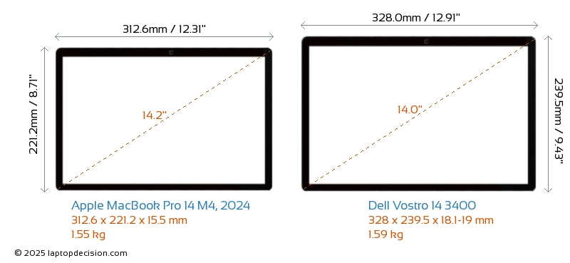 Audio JackBoth MacBook Pro 14 M4, 2024 and Vostro 14 3400 are equipped with a 3.5mm Audio Jack, providing seamless connection to headphones and speakers.
