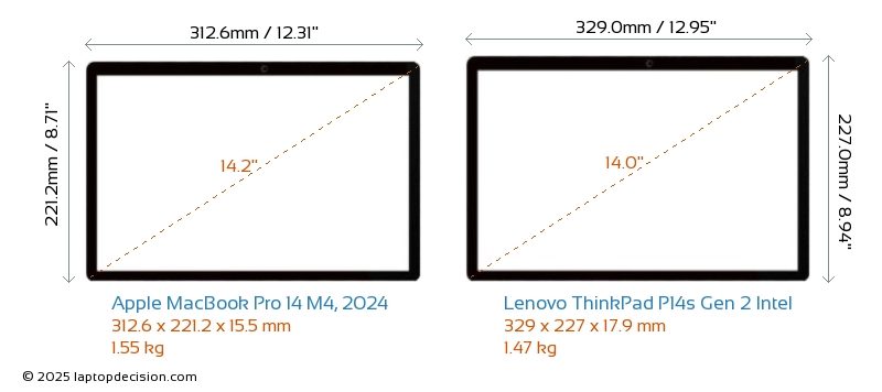 HDMIBoth MacBook Pro 14 M4, 2024 and ThinkPad P14s Gen 2 Intel feature an HDMI port. MacBook Pro 14 M4, 2024 offers 1x HDMI 2.1, while ThinkPad P14s Gen 2 Intel offers 1x HDMI 2.0.
