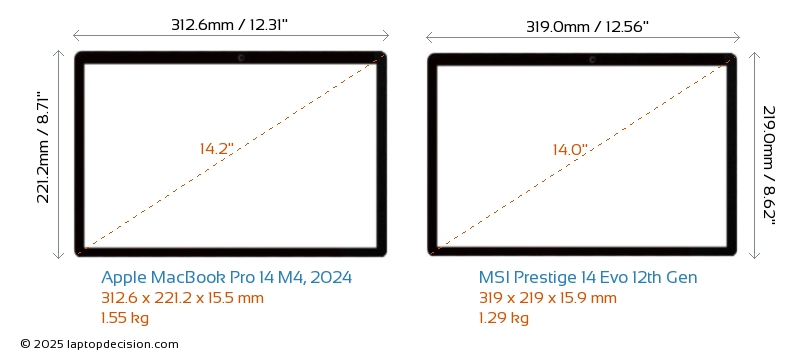 Audio JackBoth MacBook Pro 14 M4, 2024 and Prestige 14 Evo 12th Gen are equipped with a 3.5mm Audio Jack, providing seamless connection to headphones and speakers.