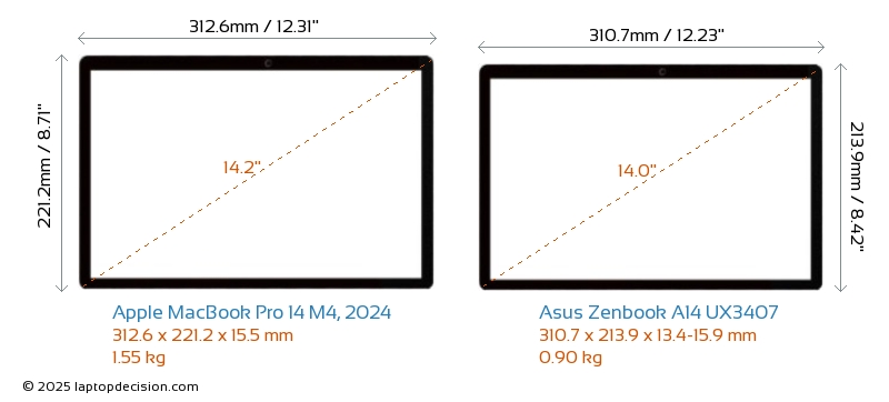 HDMIBoth MacBook Pro 14 M4, 2024 and Zenbook A14 UX3407 feature an HDMI port (1x HDMI 2.1) for connecting to external monitors.