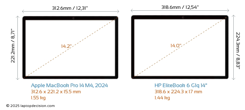 Audio JackBoth MacBook Pro 14 M4, 2024 and EliteBook 6 G1q 14" are equipped with a 3.5mm Audio Jack, providing seamless connection to headphones and speakers.