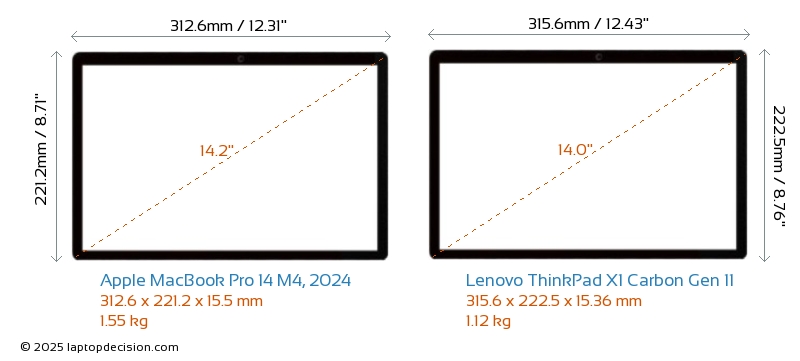 Audio JackBoth MacBook Pro 14 M4, 2024 and ThinkPad X1 Carbon Gen 11 are equipped with a 3.5mm Audio Jack, providing seamless connection to headphones and speakers.