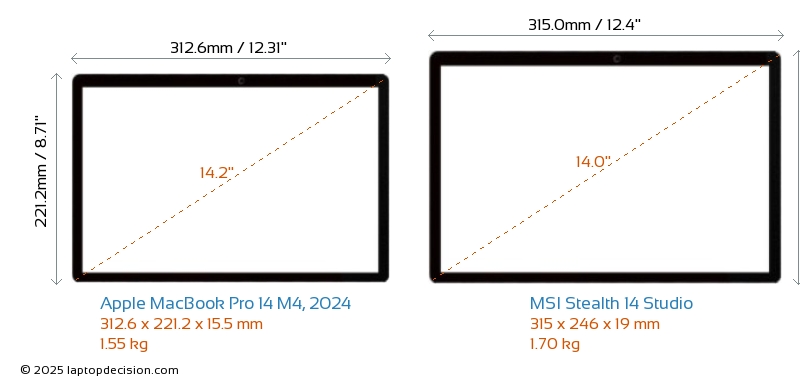 Audio JackBoth MacBook Pro 14 M4, 2024 and Stealth 14 Studio are equipped with a 3.5mm Audio Jack, providing seamless connection to headphones and speakers.