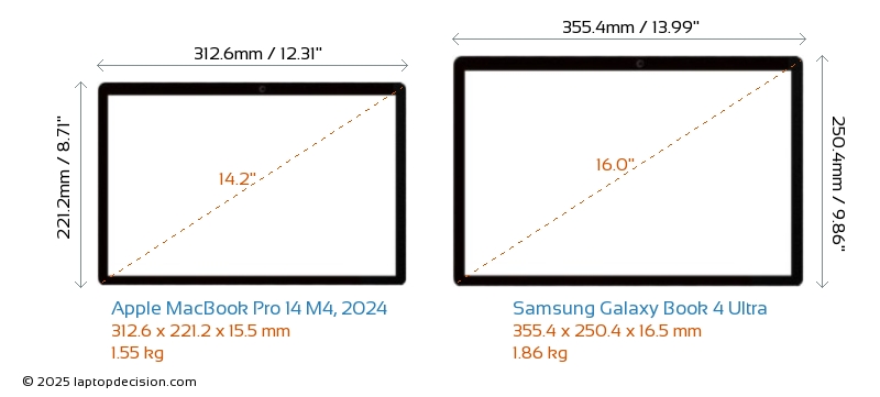 Audio JackBoth MacBook Pro 14 M4, 2024 and Galaxy Book 4 Ultra are equipped with a 3.5mm Audio Jack, providing seamless connection to headphones and speakers.