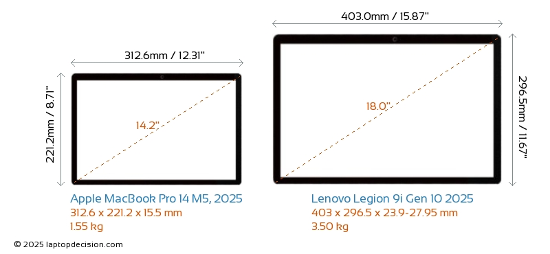 HDMIBoth MacBook Pro 14 M5, 2025 and Legion 9i Gen 10 2025 feature an HDMI port (1x HDMI 2.1) for connecting to external monitors.