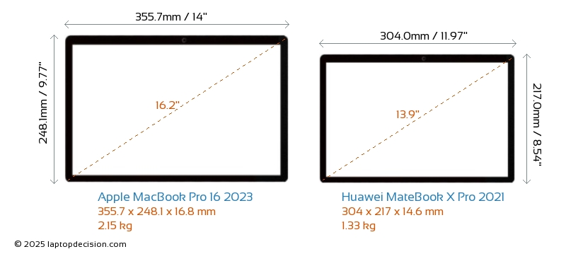 Audio JackBoth MacBook Pro 16 2023 and MateBook X Pro 2021 are equipped with a 3.5mm Audio Jack, providing seamless connection to headphones and speakers.