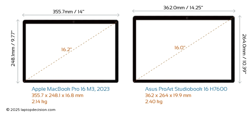 HDMIBoth MacBook Pro 16 M3, 2023 and ProArt Studiobook 16 H7600 feature an HDMI port (1x HDMI 2.1) for connecting to external monitors.