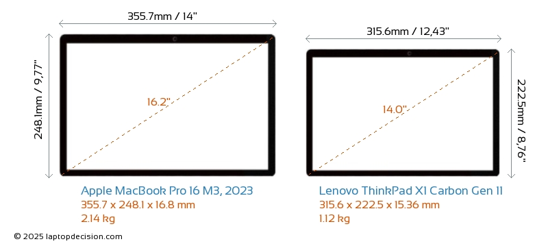 HDMIBoth MacBook Pro 16 M3, 2023 and ThinkPad X1 Carbon Gen 11 feature an HDMI port. MacBook Pro 16 M3, 2023 offers 1x HDMI 2.1, while ThinkPad X1 Carbon Gen 11 offers 1x HDMI 2.0.