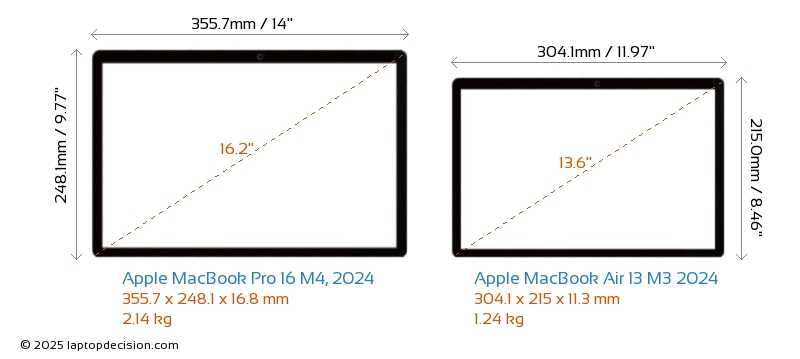 Audio JackBoth MacBook Pro 16 M4, 2024 and MacBook Air 13 M3 2024 are equipped with a 3.5mm Audio Jack, providing seamless connection to headphones and speakers.