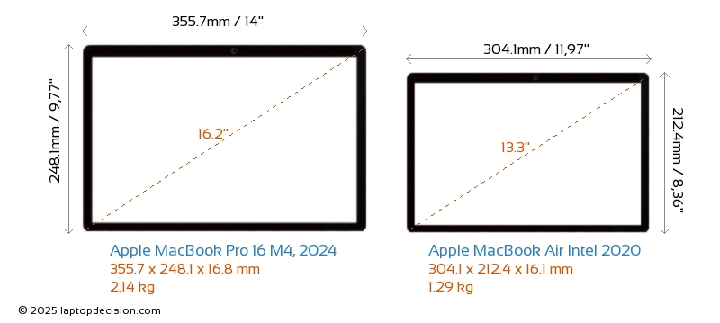 HDMI MacBook Pro 16 M4, 2024 features an HDMI port (1x HDMI 2.1) for connecting to external monitors. MacBook Air Intel 2020 does not have an HDMI port.