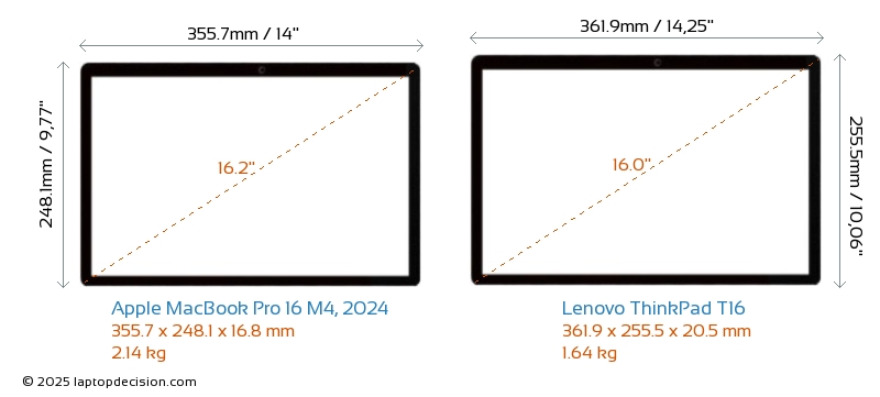 Audio JackBoth MacBook Pro 16 M4, 2024 and ThinkPad T16 are equipped with a 3.5mm Audio Jack, providing seamless connection to headphones and speakers.