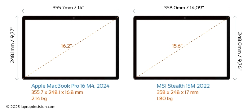 HDMIBoth MacBook Pro 16 M4, 2024 and Stealth 15M 2022 feature an HDMI port. MacBook Pro 16 M4, 2024 offers 1x HDMI 2.1, while Stealth 15M 2022 offers 1x HDMI 2.0.