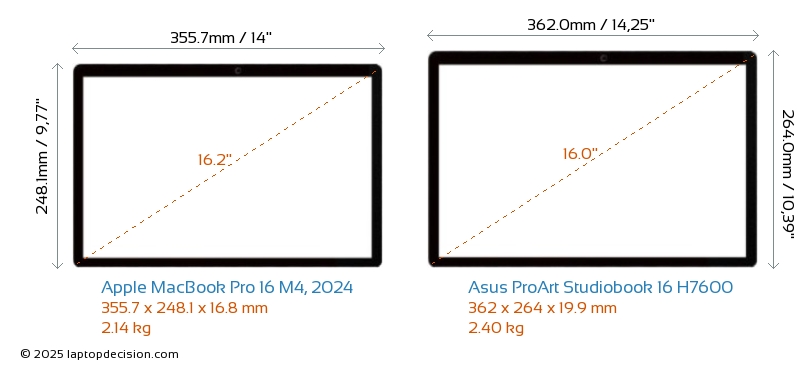 HDMIBoth MacBook Pro 16 M4, 2024 and ProArt Studiobook 16 H7600 feature an HDMI port (1x HDMI 2.1) for connecting to external monitors.