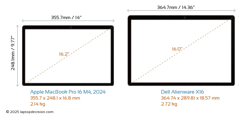 Audio JackBoth MacBook Pro 16 M4, 2024 and Alienware X16 are equipped with a 3.5mm Audio Jack, providing seamless connection to headphones and speakers.