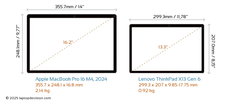 Audio JackBoth MacBook Pro 16 M4, 2024 and ThinkPad X13 Gen 6 are equipped with a 3.5mm Audio Jack, providing seamless connection to headphones and speakers.