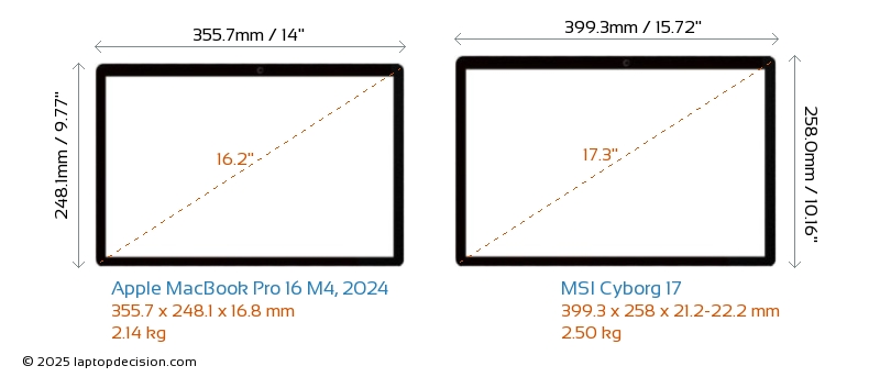 Audio JackBoth MacBook Pro 16 M4, 2024 and Cyborg 17 are equipped with a 3.5mm Audio Jack, providing seamless connection to headphones and speakers.