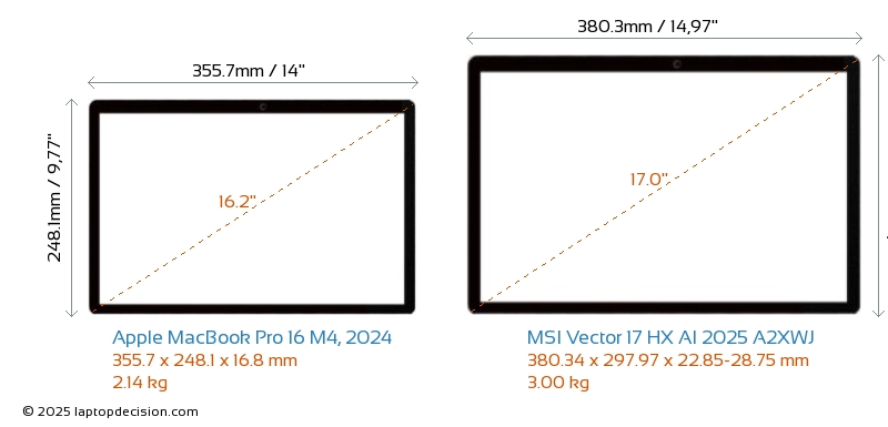Wifi Vector 17 HX AI 2025 A2XWJ features a more advanced Wi-Fi standard v7, providing faster and more reliable wireless connections compared to MacBook Pro 16 M4, 2024 (v6E).