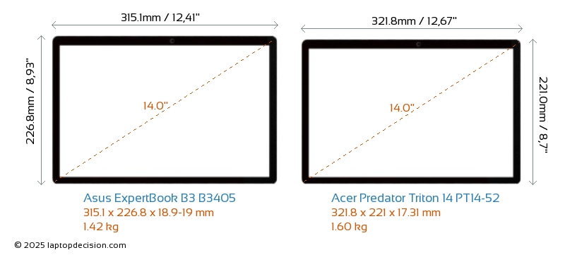 HDMIBoth ExpertBook B3 B3405 and Predator Triton 14 PT14-52 feature an HDMI port (1x HDMI 2.1) for connecting to external monitors.