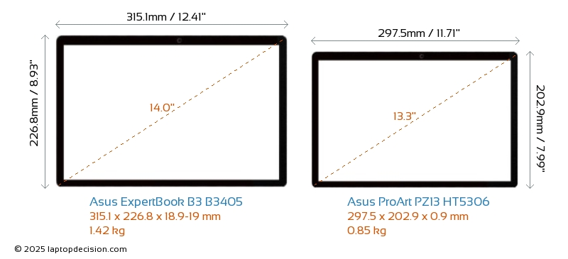 USB ExpertBook B3 B3405 is equipped with 2x USB 3.2 USB-A ports. ProArt PZ13 HT5306 does not have USB-A ports.Both ExpertBook B3 B3405 and ProArt PZ13 HT5306 feature 2x USB 4.0 USB Type-C ports.