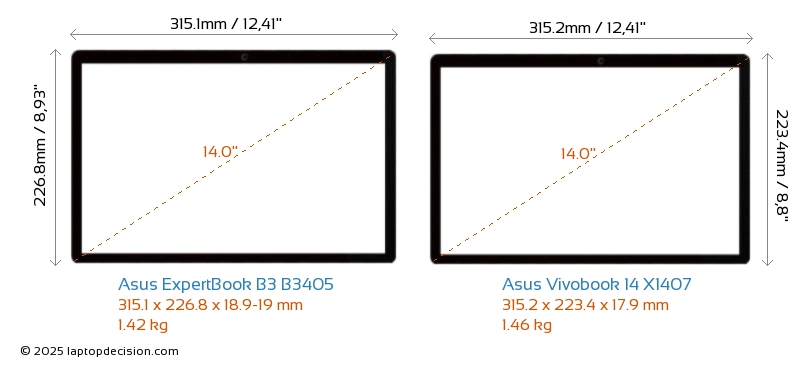HDMIBoth ExpertBook B3 B3405 and Vivobook 14 X1407 feature an HDMI port. ExpertBook B3 B3405 offers 1x HDMI 2.1, while Vivobook 14 X1407 offers 1x HDMI 1.4.