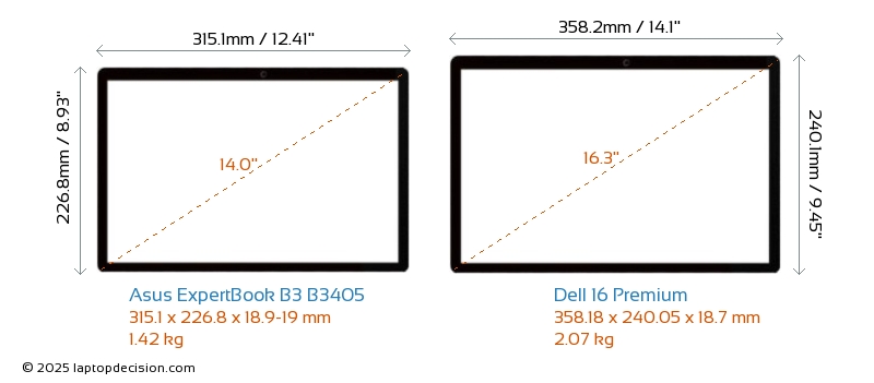 HDMI ExpertBook B3 B3405 features an HDMI port (1x HDMI 2.1) for connecting to external monitors. 16 Premium does not have an HDMI port.