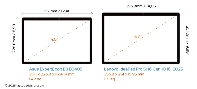 USBBoth ExpertBook B3 B3405 and IdeaPad Pro 5i 16 Gen 10 16 2025 feature 2x USB 3.2 USB-A ports.Both ExpertBook B3 B3405 and IdeaPad Pro 5i 16 Gen 10 16 2025 feature 2x USB 4.0 USB Type-C ports.