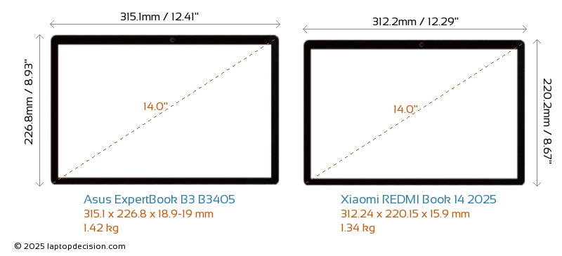 USBBoth ExpertBook B3 B3405 and REDMI Book 14 2025 feature 2x USB 3.2 USB-A ports.Both ExpertBook B3 B3405 and REDMI Book 14 2025 feature 2x USB 4.0 USB Type-C ports.