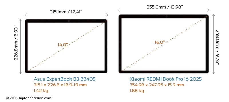 HDMIBoth ExpertBook B3 B3405 and REDMI Book Pro 16 2025 feature an HDMI port (1x HDMI 2.1) for connecting to external monitors.