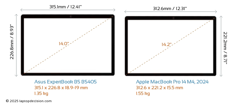 ThunderboltBoth ExpertBook B5 B5405 and MacBook Pro 14 M4, 2024 are equipped with Thunderbolt 4 ports.