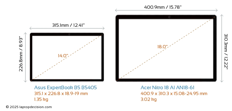 HDMIBoth ExpertBook B5 B5405 and Nitro 18 AI AN18-61 feature an HDMI port (1x HDMI 2.1) for connecting to external monitors.