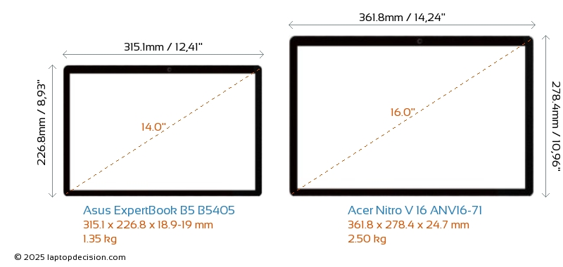 HDMIBoth ExpertBook B5 B5405 and Nitro V 16 ANV16-71 feature an HDMI port (1x HDMI 2.1) for connecting to external monitors.