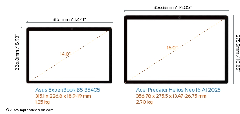 HDMIBoth ExpertBook B5 B5405 and Predator Helios Neo 16 AI 2025 feature an HDMI port (1x HDMI 2.1) for connecting to external monitors.