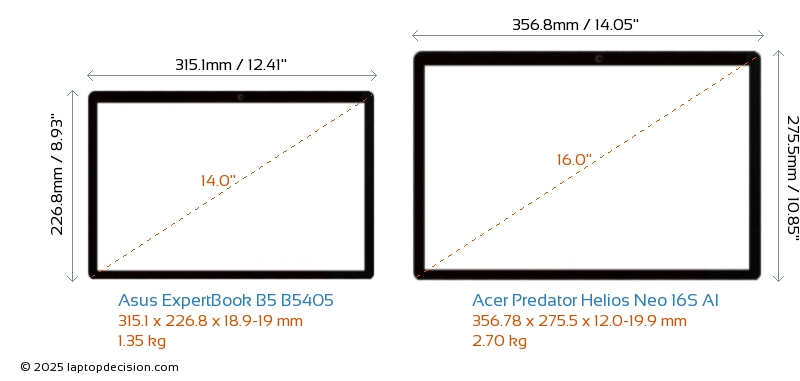 HDMIBoth ExpertBook B5 B5405 and Predator Helios Neo 16S AI feature an HDMI port (1x HDMI 2.1) for connecting to external monitors.