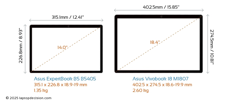 USBBoth ExpertBook B5 B5405 and Vivobook 18 M1807 feature 2x USB 3.2 USB-A ports.Both ExpertBook B5 B5405 and Vivobook 18 M1807 feature 2x USB 4.0 USB Type-C ports.