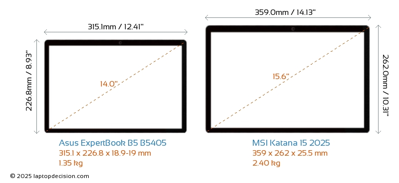 HDMIBoth ExpertBook B5 B5405 and Katana 15 2025 feature an HDMI port (1x HDMI 2.1) for connecting to external monitors.