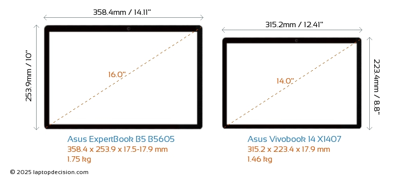 HDMIBoth ExpertBook B5 B5605 and Vivobook 14 X1407 feature an HDMI port. ExpertBook B5 B5605 offers 1x HDMI 2.1, while Vivobook 14 X1407 offers 1x HDMI 1.4.