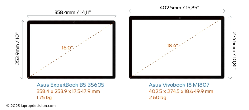 HDMIBoth ExpertBook B5 B5605 and Vivobook 18 M1807 feature an HDMI port (1x HDMI 2.1) for connecting to external monitors.