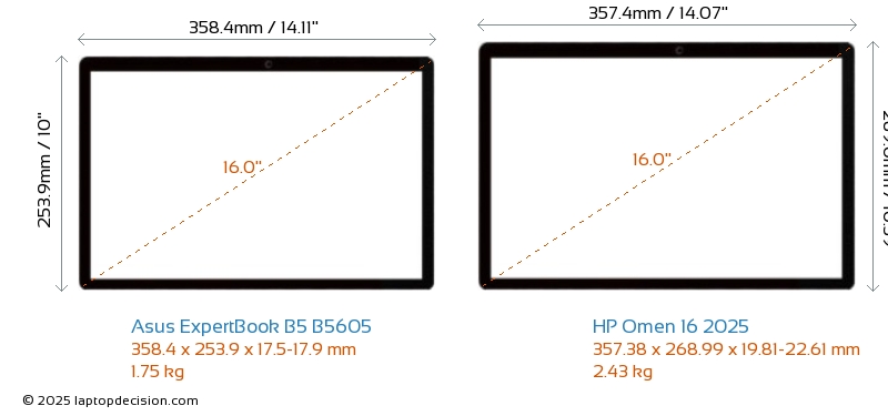 HDMIBoth ExpertBook B5 B5605 and Omen 16 2025 feature an HDMI port (1x HDMI 2.1) for connecting to external monitors.