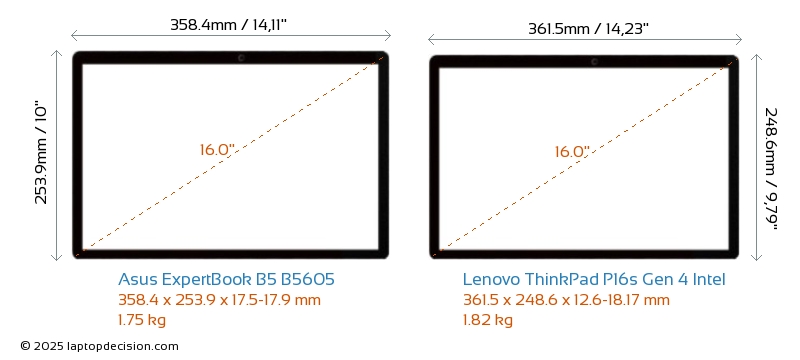 USBBoth ExpertBook B5 B5605 and ThinkPad P16s Gen 4 Intel feature 2x USB 3.2 USB-A ports.Both ExpertBook B5 B5605 and ThinkPad P16s Gen 4 Intel feature 2x USB 4.0 USB Type-C ports.