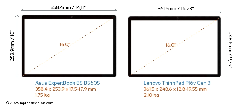 HDMIBoth ExpertBook B5 B5605 and ThinkPad P16v Gen 3 feature an HDMI port (1x HDMI 2.1) for connecting to external monitors.