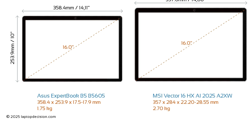 USBBoth ExpertBook B5 B5605 and Vector 16 HX AI 2025 A2XW feature 2x USB 3.2 USB-A ports.Both ExpertBook B5 B5605 and Vector 16 HX AI 2025 A2XW feature 2x USB 4.0 USB Type-C ports.