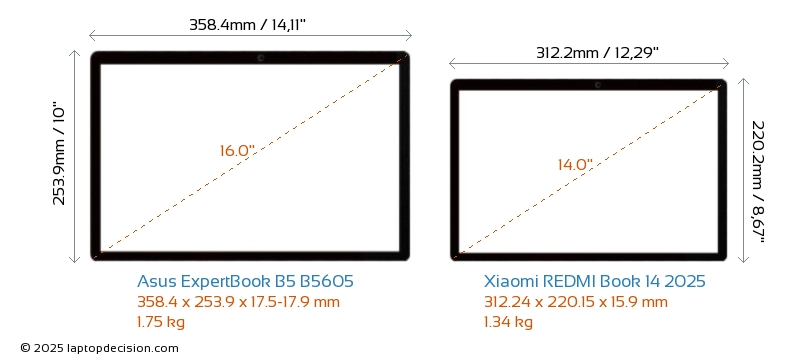 HDMIBoth ExpertBook B5 B5605 and REDMI Book 14 2025 feature an HDMI port (1x HDMI 2.1) for connecting to external monitors.