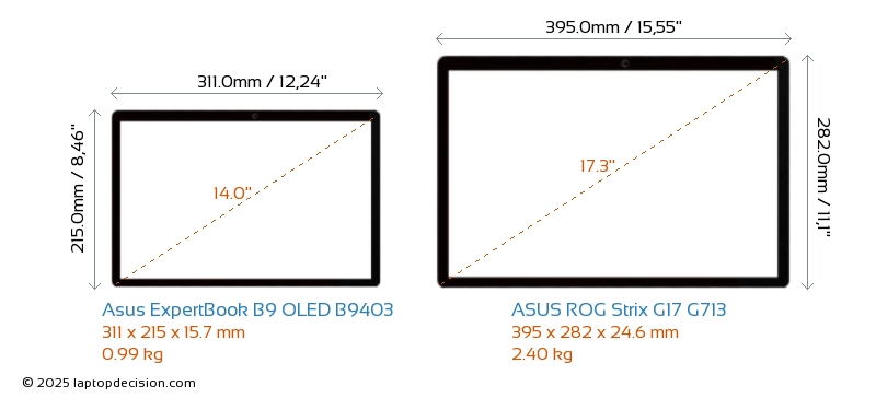 HDMIBoth ExpertBook B9 OLED B9403 and ROG Strix G17 G713 feature an HDMI port. ExpertBook B9 OLED B9403 offers 1x HDMI 2.1, while ROG Strix G17 G713 offers 1x HDMI 2.0.
