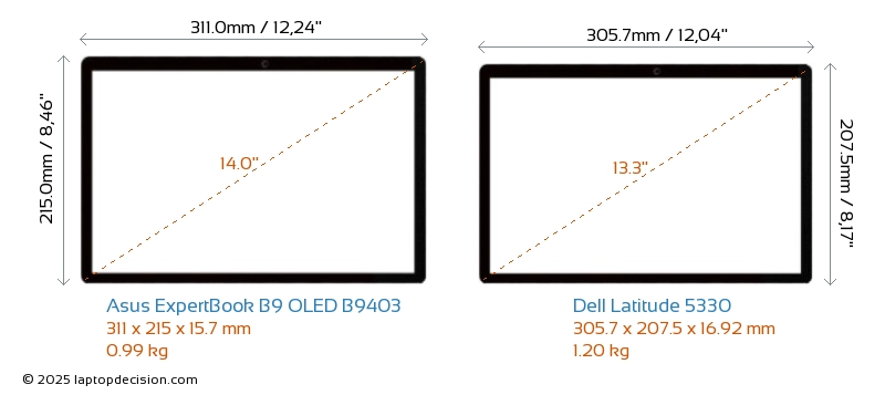 USBBoth ExpertBook B9 OLED B9403 and Latitude 5330 have USB-A ports. ExpertBook B9 OLED B9403 has 1x USB 3.2 USB-A ports, while Latitude 5330 has 2x USB 3.2 USB-A ports.Both ExpertBook B9 OLED B9403 and Latitude 5330 have USB Type-C ports. ExpertBook B9 OLED B9403 has 2x USB 4.0 USB Type-C ports, while Latitude 5330 has 2x USB 3.2 USB Type-C ports.