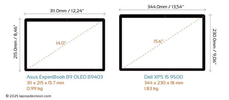 HDMI ExpertBook B9 OLED B9403 features an HDMI port (1x HDMI 2.1) for connecting to external monitors. XPS 15 9500 does not have an HDMI port.