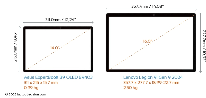 SD Card Reader Legion 9i Gen 9 2024 is equipped with an SD Card Reader for easy access to memory cards. ExpertBook B9 OLED B9403 does not have an SD Card Reader.